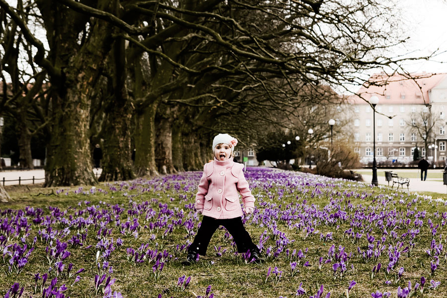 W końcu po kilku chłodnych dniach znowu mamy piękną wiosnę!!! Huraaaa!!! tak długo na nią czekałam! Teraz zaczną się plenery, bajecznie kolorowe, słoneczne, pachnące... już nie mogę się doczekać... W ubiegłym roku przegapiliśmy, ale w tym wybraliśmy się do parku, by obejrzeć krokusowy dywan. Nadia zerwała trzy kwiatki, za co zostałam ja, jako mama, "grzecznie upomniana" przez panią z pieskiem, że tak się nie robi... Cóż miała rację, ale przyznam się szczerze, że sama miałam ochotę zerwać nie trzy, ale całą garść fioletowych piękności i zabrać do domu :)